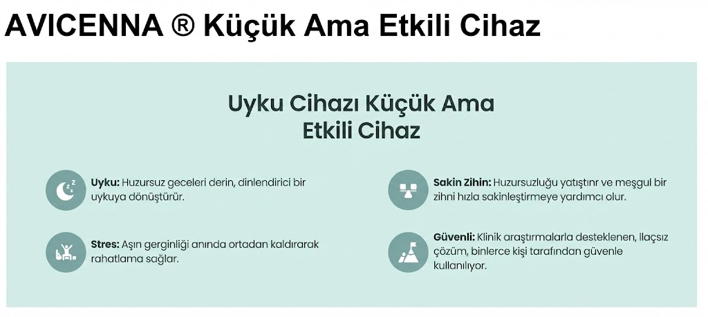 Geleneksel bilgeliği modern bilimle birleştiren Avicenna Uyku Cihazı (HE-M001), CES (Kraniyal Elektroterapi Stimülasyonu) teknolojisini kullanır.